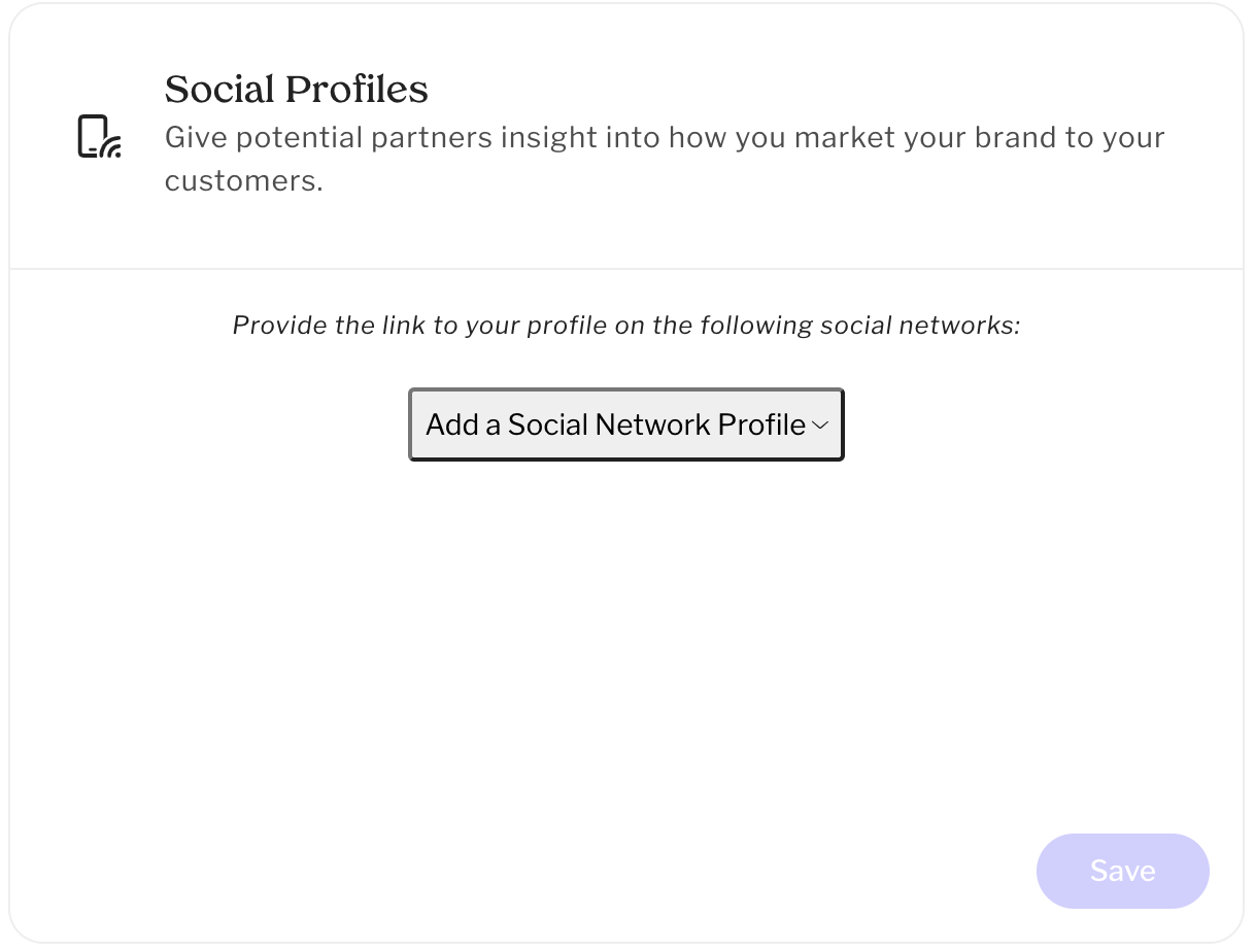 Add links to your social media profiles so Carro can share them with prospective and current partners.