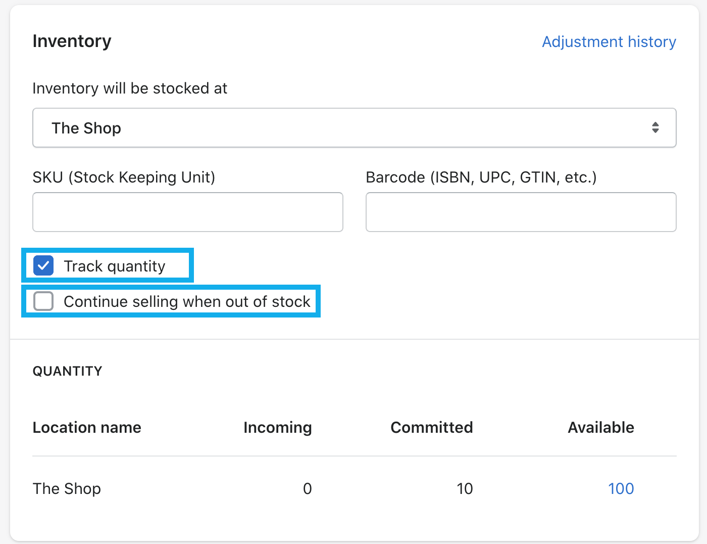Shopify Inventory Settings: Track Quantity & Continue Selling When Out of Stock