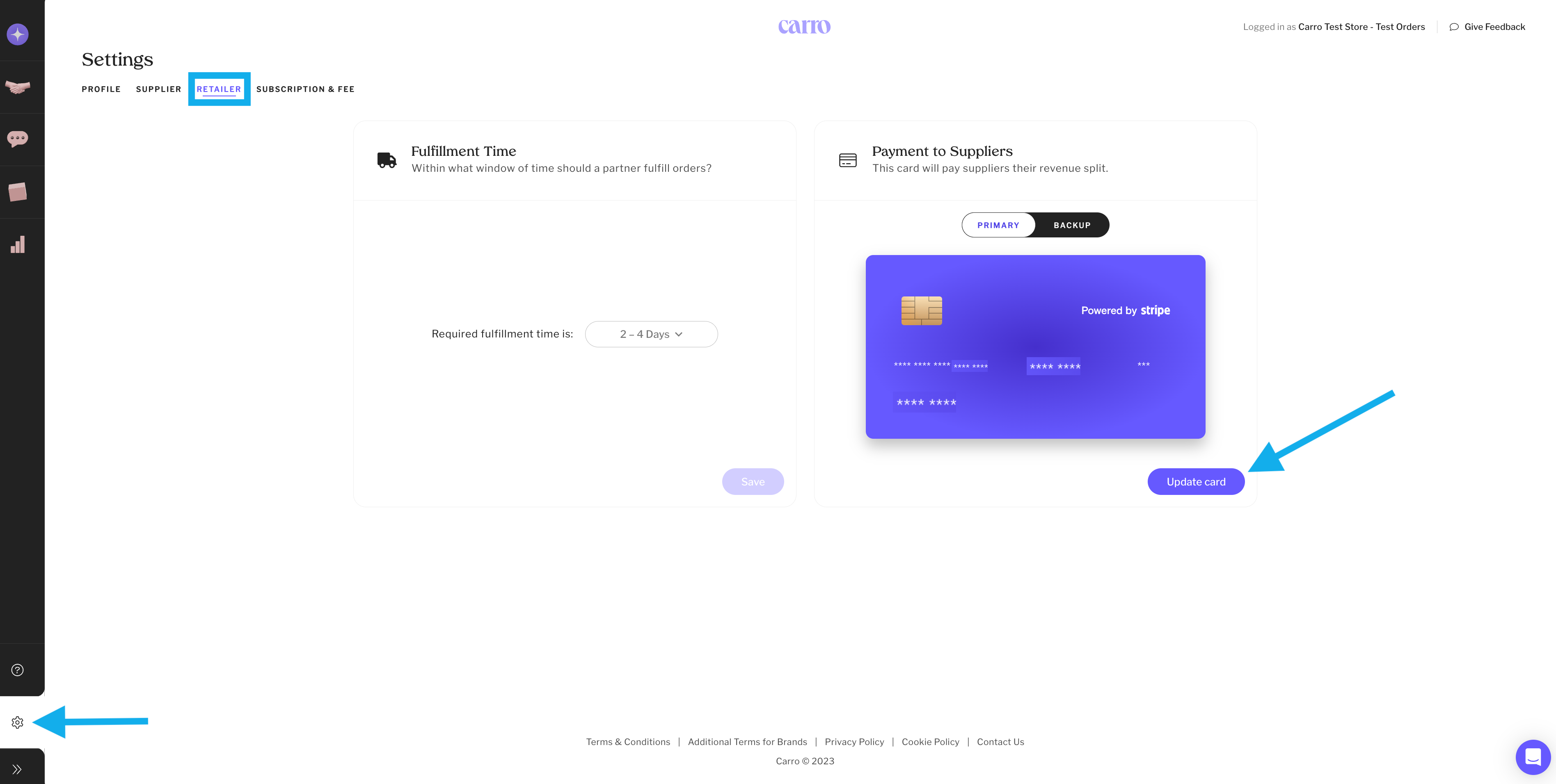 Go to the Carro Settings tab.