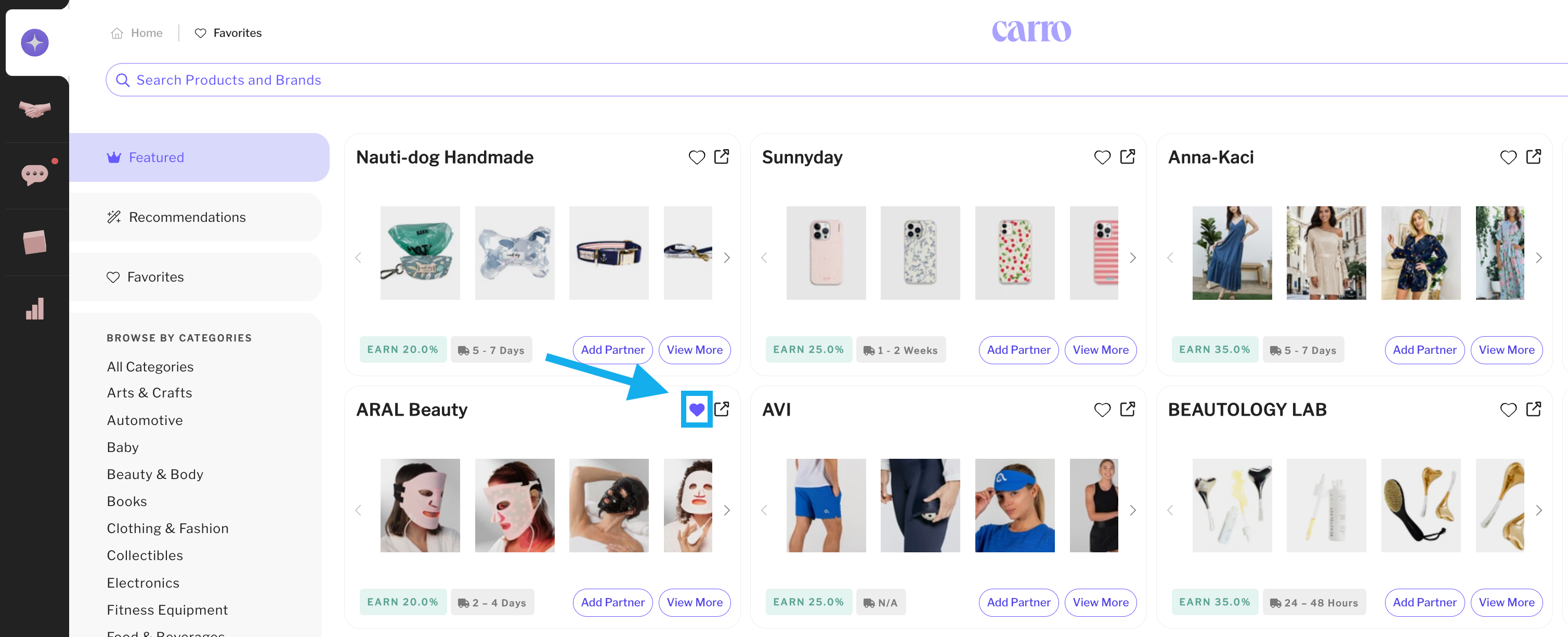 Click the ❤️ icon next to a brand or product, and it will be added to your Favorites collection for easy access anytime.