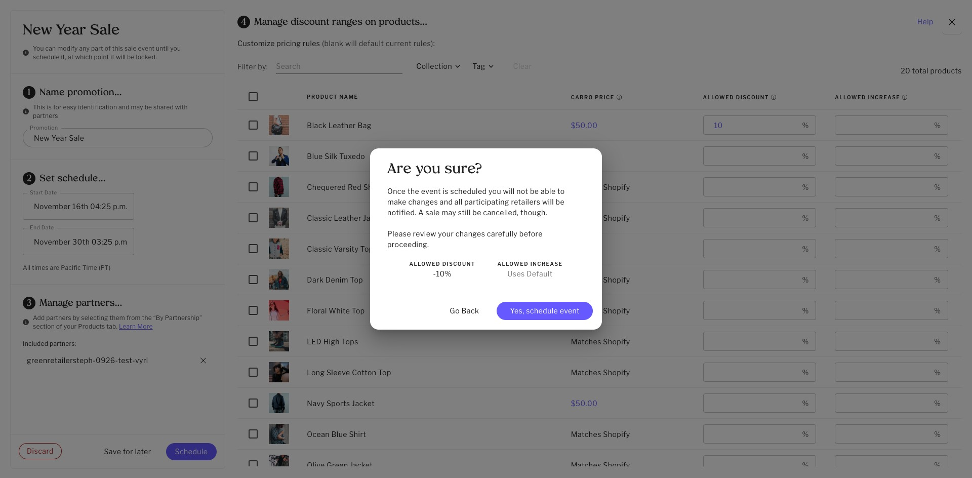 Yes. Retailers included in the event are notified via email when you schedule it. The email includes your store’s name, event details, and instructions on how to apply the sale.