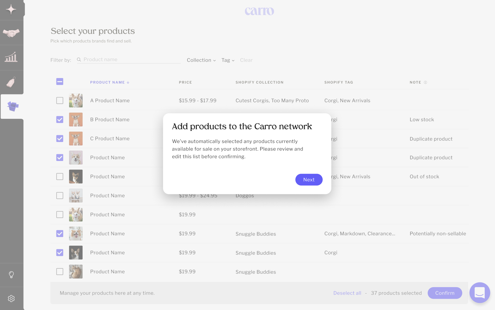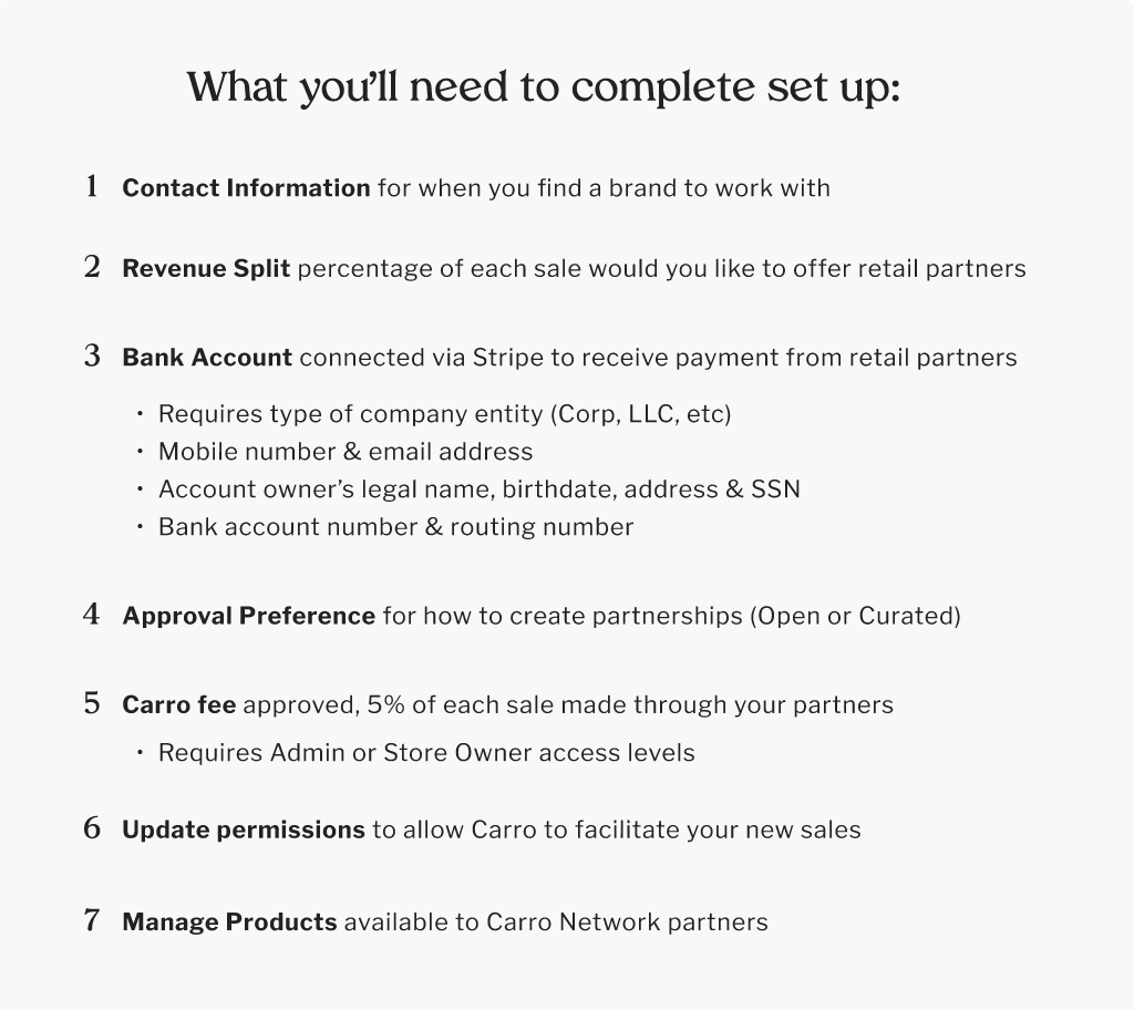 11. Choose which products you make available to the Carro network. Need help? Check out this article.