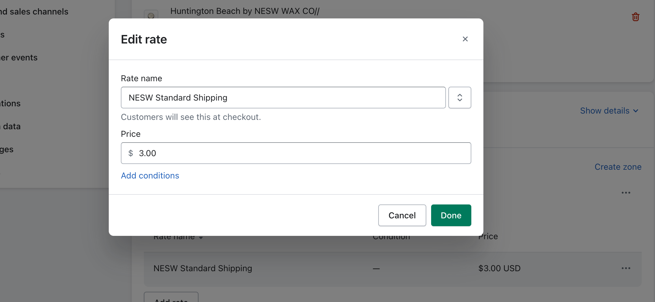 Enter a Rate Name, then set the appropriate Price for shipping. Click Done.