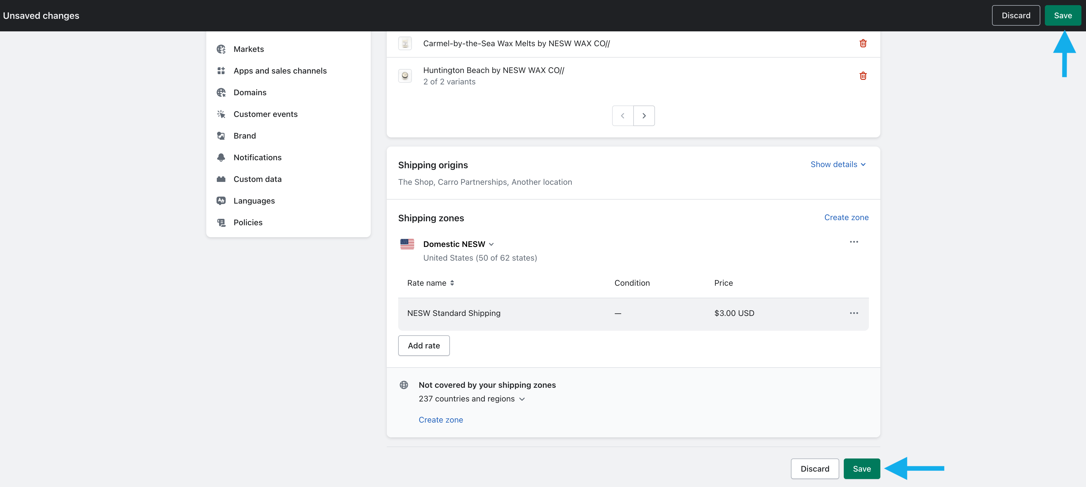 To test, add one of the products to your cart and confirm that the correct domestic shipping is applied at checkout.