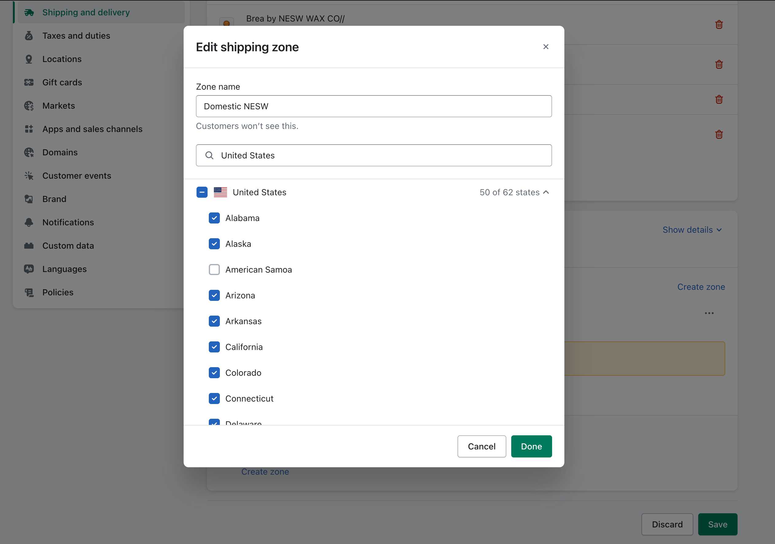 Uncheck Territories and any non-states, then click Done.