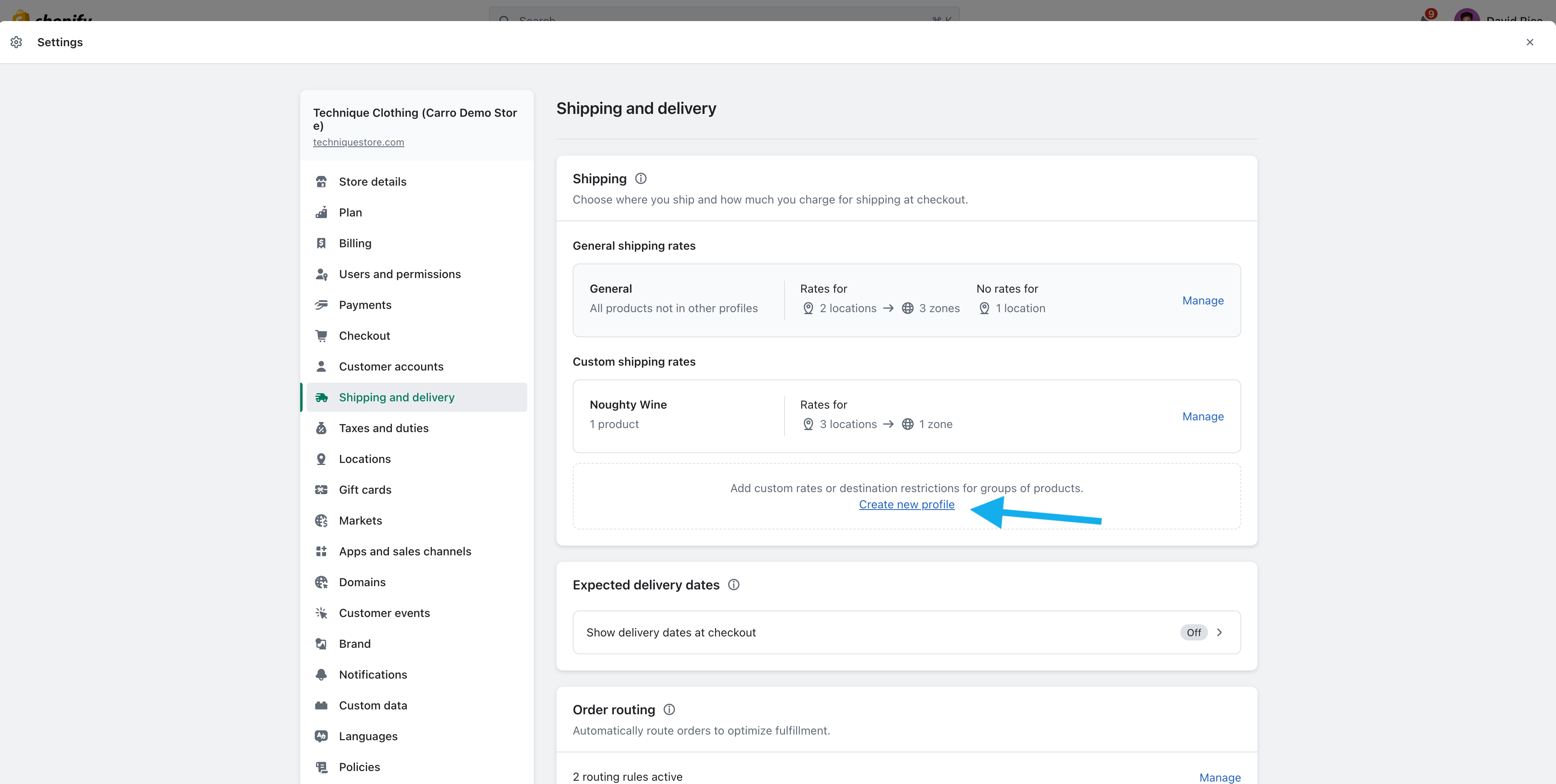 Enter a Name for the new shipping profile.