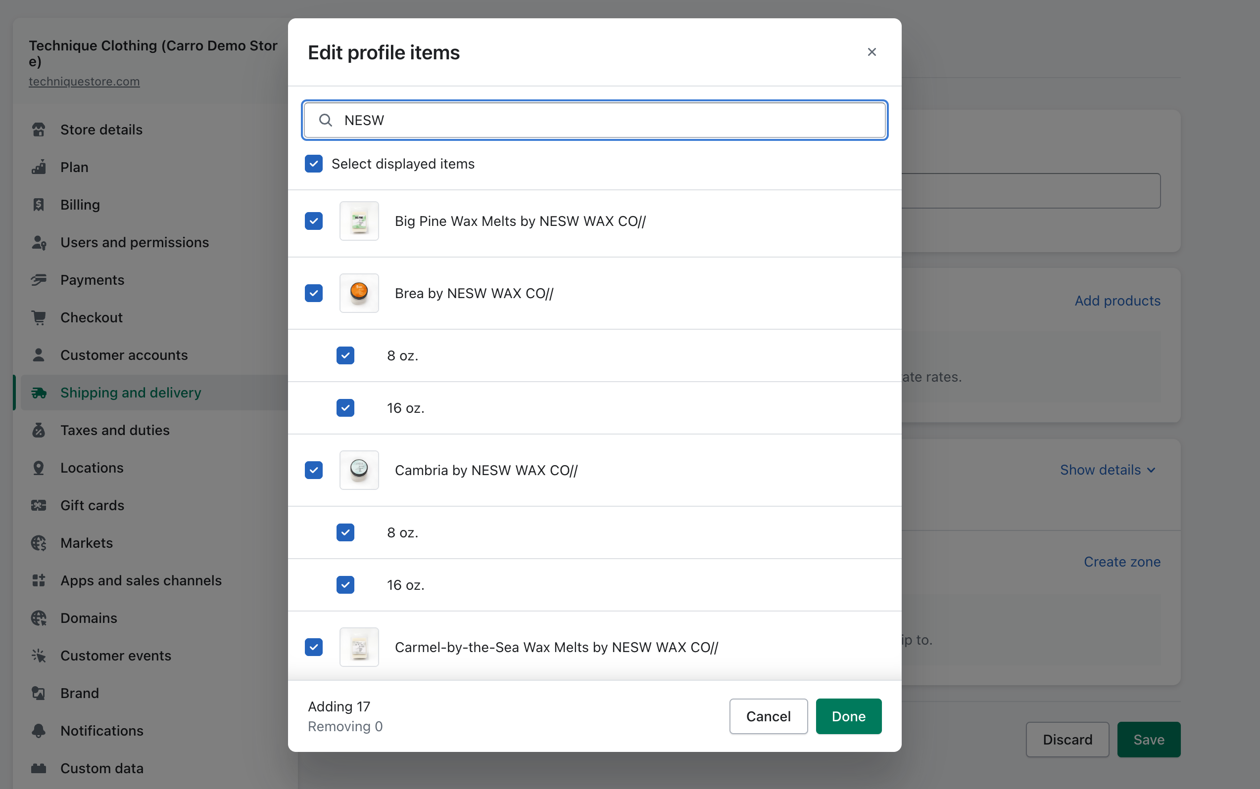 Select the product(s) you want included in this profile, then click Done.