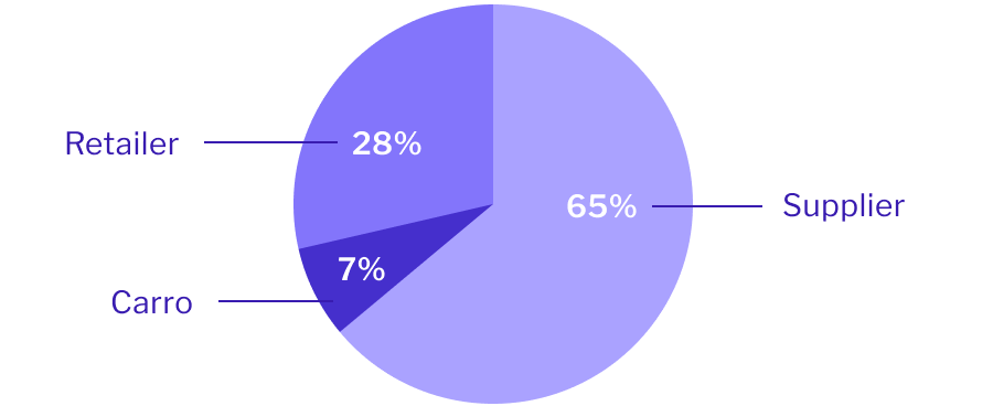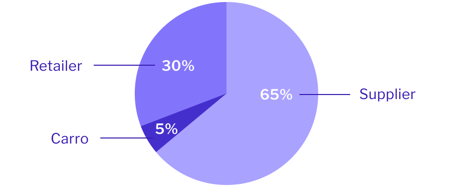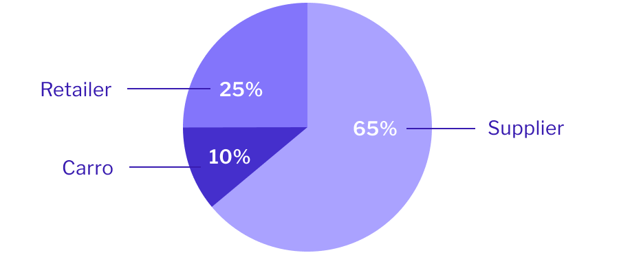 Suppliers decide what percentage of the sales they keep. Suppliers don’t incur any Carro usage charges.