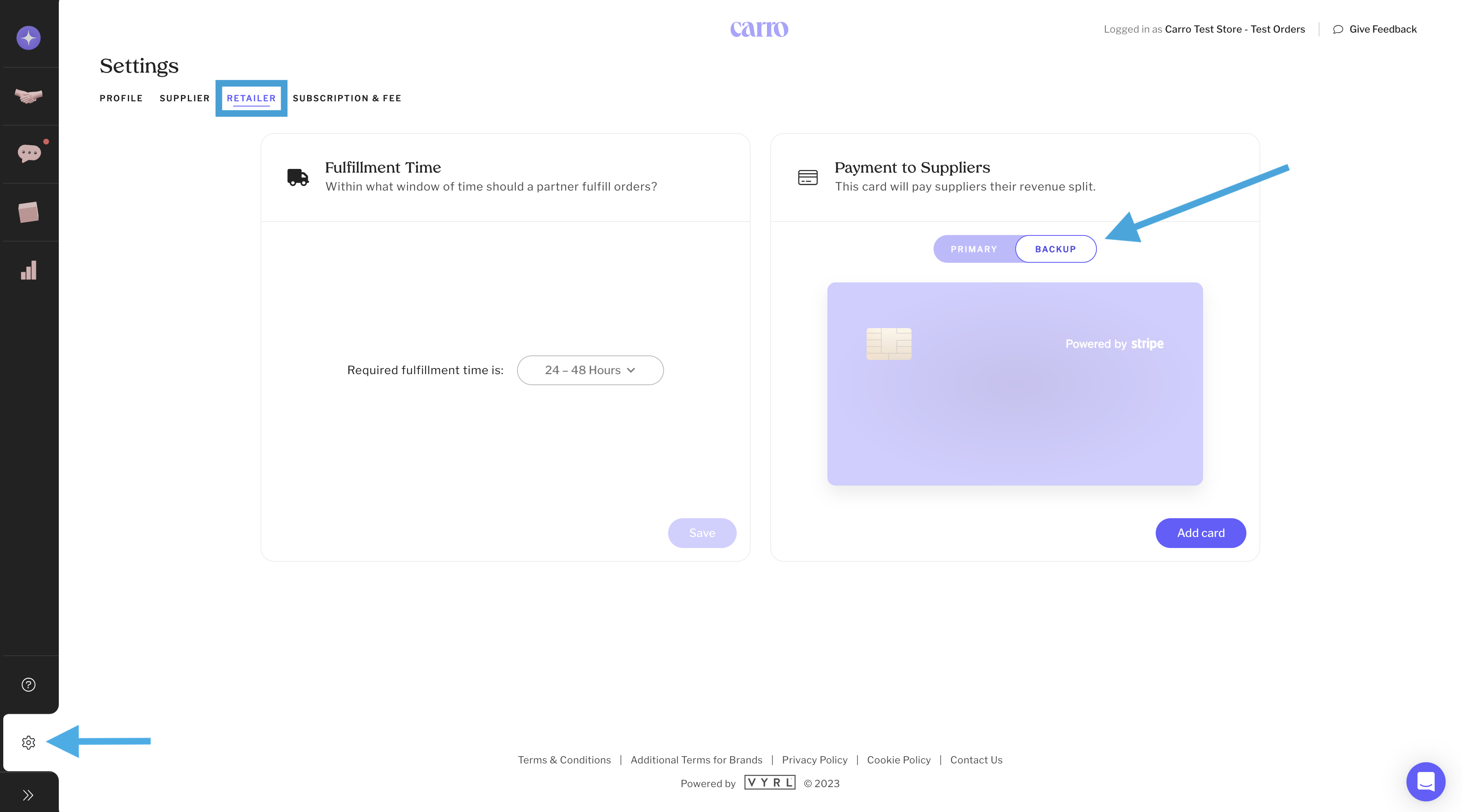 This backup card ensures that payments for supplier products continue smoothly if your primary card fails